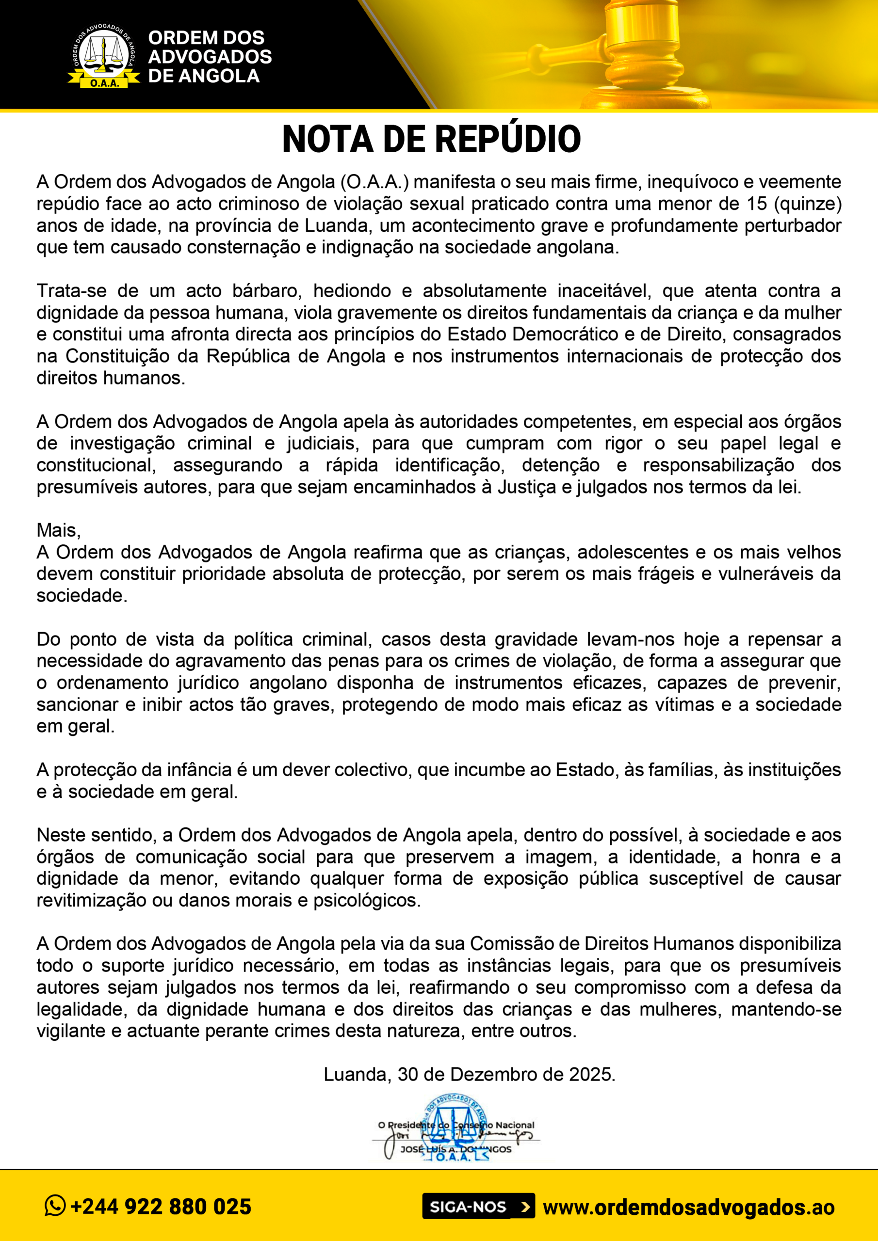 Somos a Ordem dos Advogados de Angola, promovendo a ética, o respeito à lei e a defesa da cidadania. Seu acesso à justiça começa aqui.